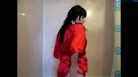 In the beginning scene of our porn video, a stunning brunette beauty, wearing a captivating red bathrobe that effortlessly draws attention to her irresistible charms, stands before the bathroom door, her eyes closed as she takes a moment to enjoy the serenity and intimacy of this special place.As she opens the door and steps into the shower room, her sensuous aura only grows more powerful and enchanting.The sight of the brunette undoing her bathrobe with a hint of trepidation and anticipation, exposing her breathtakingly stunning body wearing lingerie that matches her seductive mood, sends shivers down one's spine, preparing them for the journey of sensual delights that await.Her heart racing with excitement, she feels the hot water spray against her skin as she enjoys the sensation of it cascading over her body, washing away the worries of her daily life.As the brunette allows herself to be enveloped by the shower's warmth and caresses, she slowly starts touching herself, running her hands over her luscious breasts, pinching at her sensitive nipples, which are erect, demanding attention.The sensations from these touches meld together with the hot water's embrace, creating an unparalleled wave of pleasure that washes over her body like a tidal fun of ecstasy.As she caresses her body more intimately, moving down to explore her wet, yearning pussy, she begins teasing herself with a finger or two.The sensation of the water pouring onto her, intensifying every touch and bringing her closer to the edge, is an experience she welcomes wholeheartedly as her fingers dive inside her, causing her body to convulse with horny passion.Each thrust into her tight, eager pussy drives her further away from reality and deeper into a world of euphoria, where moans fill the steamy bathroom air.Her body tenses, preparing for the climactic release that she knows awaits her, just around the corner.The tension mounts until it can't be contained any longer - with eyes still closed and legs weak from desire, she surrenders to the orgasmic tsunami, her entire being enveloped in wave after wave of raw passion as she releases everything that has been building up within her.Once the storm has passed and the brunette emerges from this ethereal realm, drenched not only by the water but by her own desire, she steps out of the shower with a satisfied smile on her face.The once-tight clasp of her robe is now replaced by an even more sensual hold - the damp fabric sticking to her body as if it were a second skin.She then confidently reaches for another bathrobe, knowing that there are more tantalizing pleasures yet to come, leaving the viewer yearning for more.